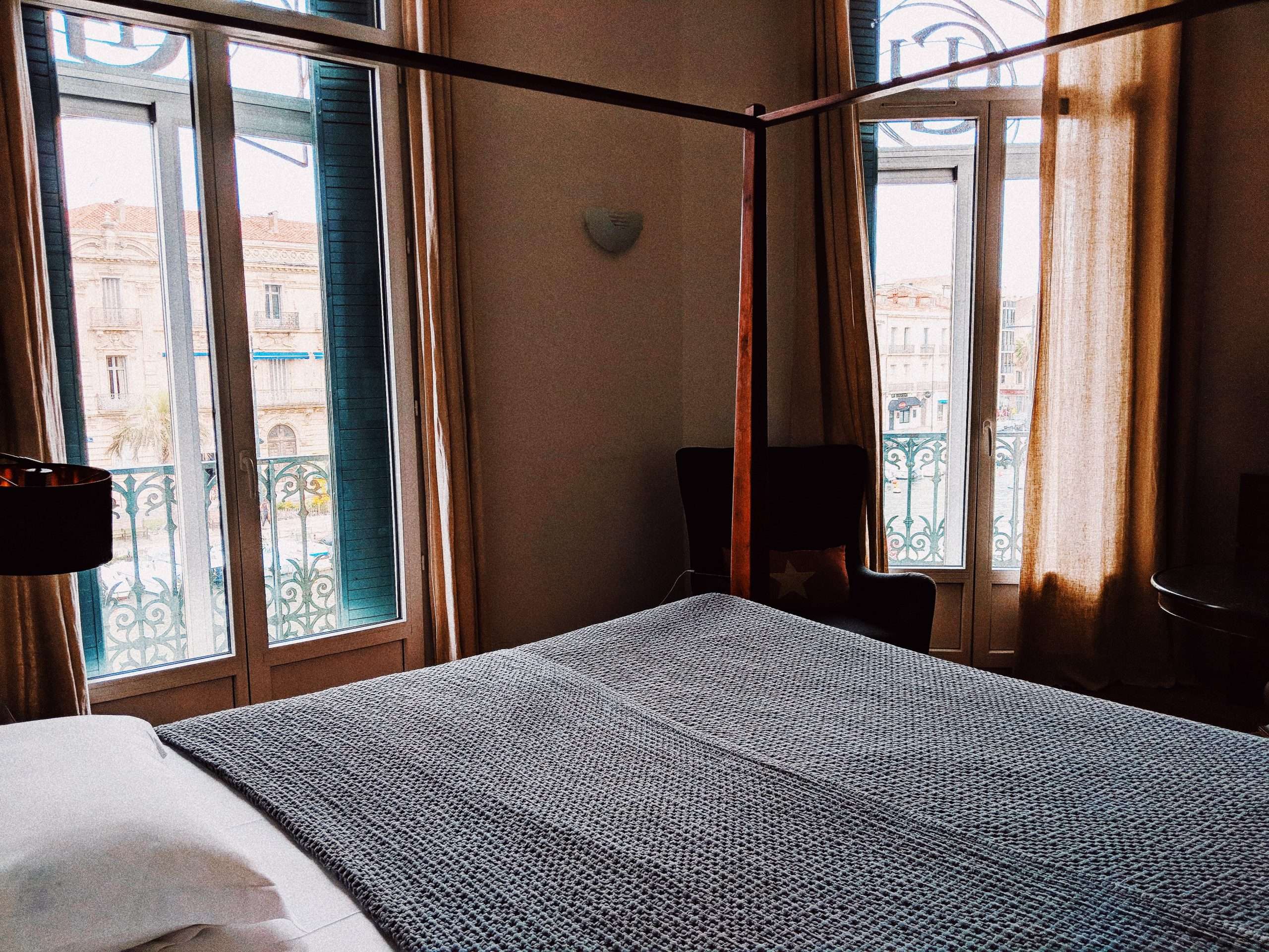 In the heart of Sète at Le Grand Hotel. Splurge and get a guest room with one of the balconies overlooking the canal. We had a lovely spacious room with a small foyer and entrance, which is amazing for a light sleeper who easily gets disturbed by noise from a hotel hallway.
